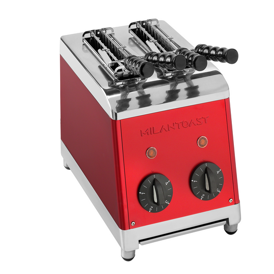 A Milantoast original toaster rebakes your bread so it is hot all the way through and crisps the outside for an unbeatable crunch. With independent vertical ovens and four elements you have control over your slice, for toast exactly the way you like it.