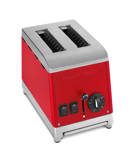 Milantoast 2-slice toasters are designed for a better crunch. The inside of the toaster is like two mini-ovens with four independent elements to ensure each side of your bread is treated equally, whether you’re toasting one slice or two. Milantoasters gently re-bake your bread through, while crisping the outer crust. This is a process which can’t be rushed, but Milantoast has calculated the optimum temperature and time for the job, and you have the control to adjust the timer for toast exactly the way you like it.